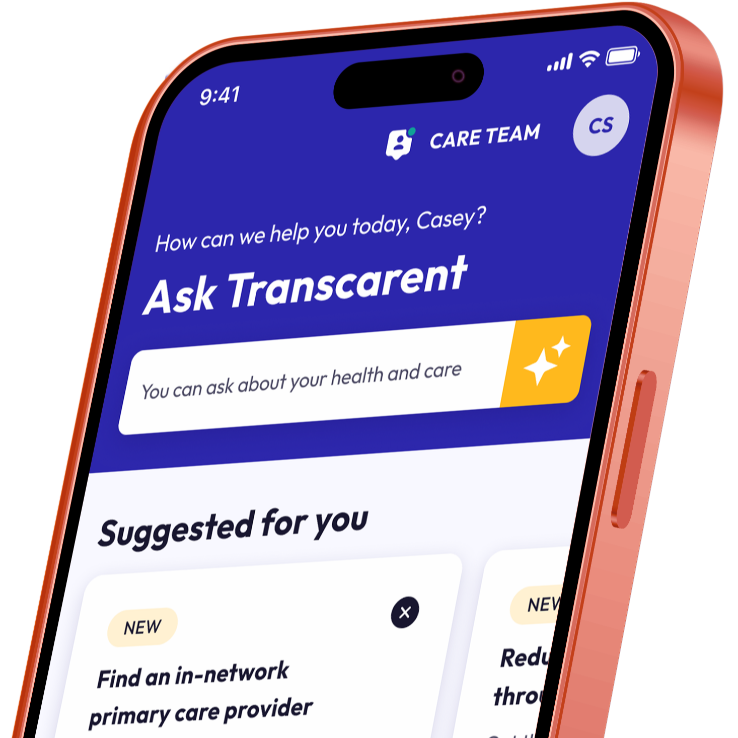 Using your Apple benefits is easier than ever with Transcarent. With one simple app, you can quickly find an in-network, quality doctor, get one-on-one support navigating your benefits, and ask questions to get instant answers about your care and benefits—anytime.
